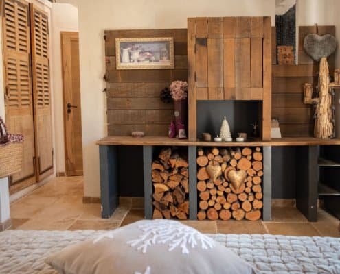 À l’intérieur, l’ambiance est chaleureuse et enveloppante, portée par le bois et les matières naturelles. Chaque détail participe à cette sensation de calme et d’intimité, comme une invitation à ralentir et à se reconnecter à l’essentiel.