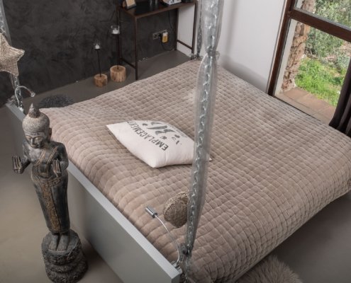 Empruntez l’escalier d’un passage discret et laissez-vous guider jusqu’à cette suite nichée à l’étage, baignée de lumière et bercée par la canopée des chênes. D’une élégance brute et contemporaine, Rêve Suspendu mêle le métal, le béton ciré et la peinture à l’essuyée dans une atmosphère singulière, à la fois poétique et affirmée.