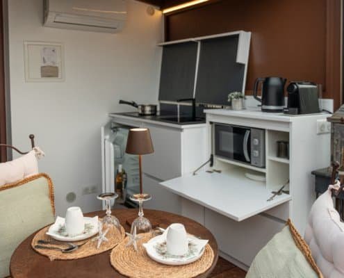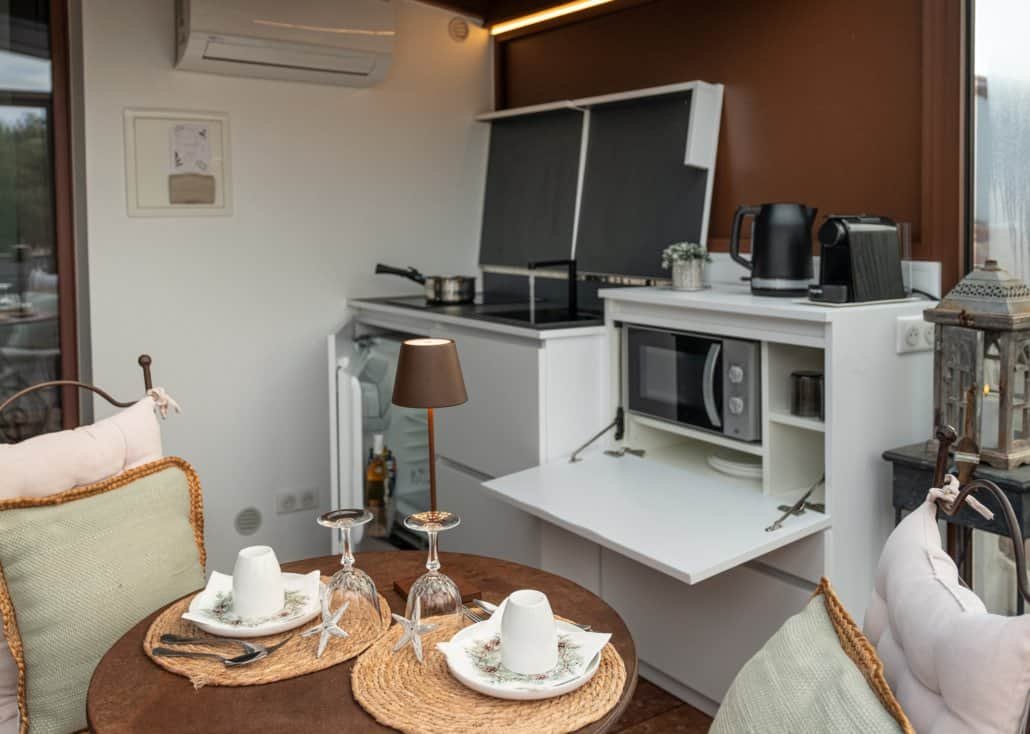 Son lit queen-size suspendu flotte au cœur de la pièce, promesse d’un sommeil léger comme l’air. Depuis votre terrasse privative, contemplez les chaînes de montagnes varoises qui se dessinent à l’horizon. À l’intérieur, chaque détail a été pensé pour le confort et l’enchantement : literie grand luxe, mini-bar, climatisation, wifi, et un spa privatif pour prolonger la magie, en toutes saisons.
